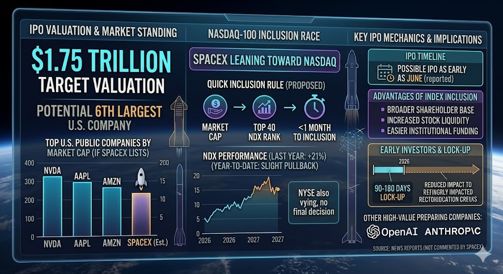 In February, it was reported that SpaceX’s advisory team had been in talks with major index providers such as Nasdaq regarding the possibility of early inclusion in core indexes.